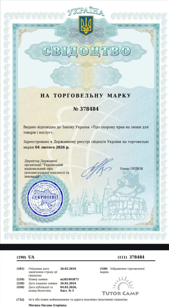 Tutor Camp – зареєстрована торгова марка!